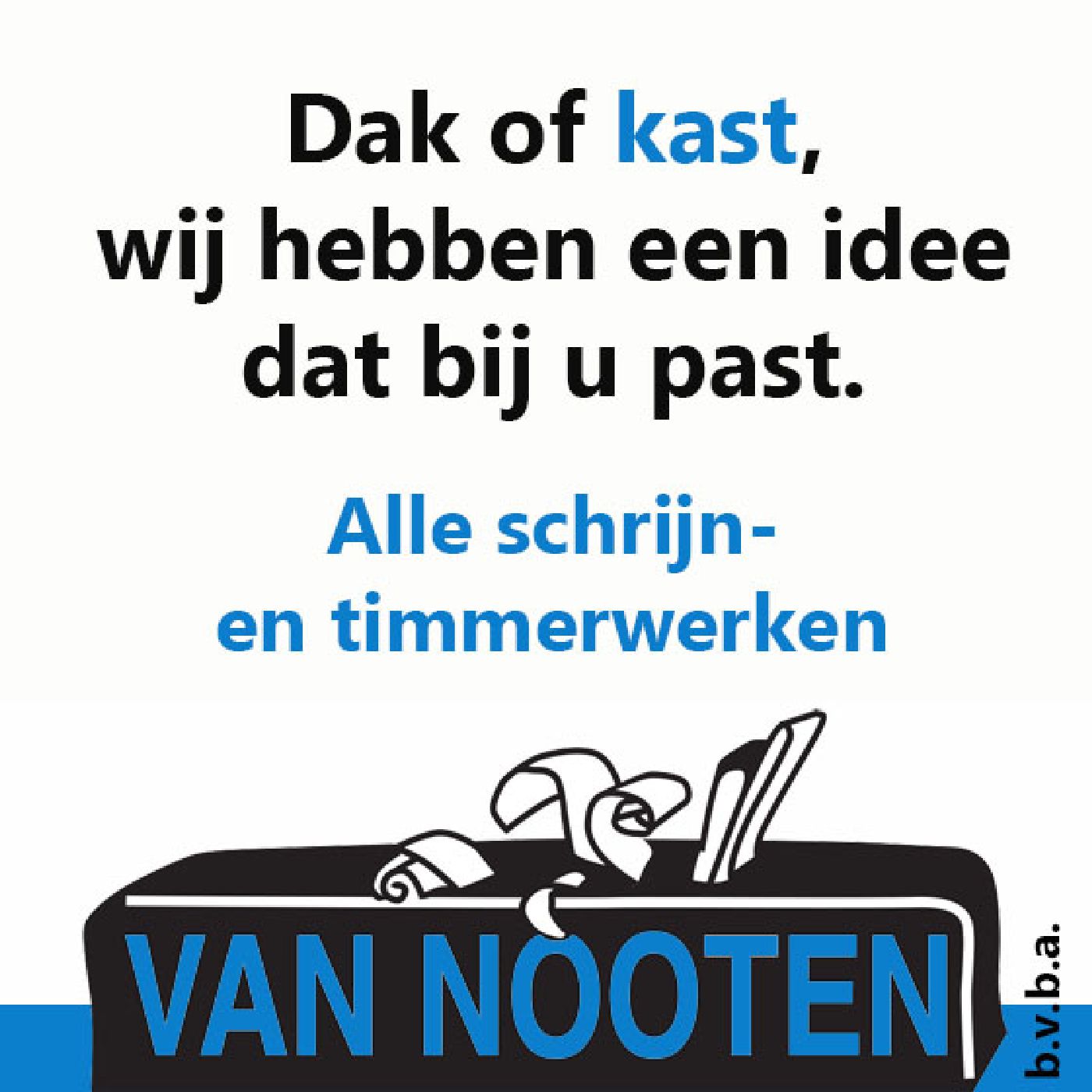 Schrijnwerkerij Van Nooten werd in 1988 opgericht door Antoon Van Nooten die de eerste jaren alleen in zijn zaak werkte. Na twee jaar werd er een vennootschap van gemaakt en heeft hij werknemers in dienst moeten nemen omdat het werkaanbod te groot werd. Ondertussen, bijna 30 jaar later, is de zaak overgedragen van vader op zoon en zijn er nog meer werknemers bijgekomen.